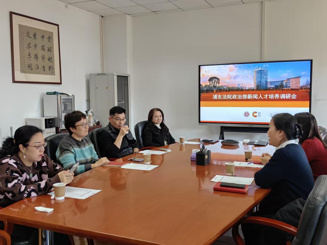 2025年12月4日中午,浦东法院政治部副主任严剑漪、政治部新闻中心副主任周丹彤一行到访华东师范大学传播学院,传播学院副院长于晶、新闻学系系主任李海波、出版与文化系系主任邓香莲、广播电视学系系主任钱春莲共同接待,并于传播学院211会议室开展座谈交流,进行人才培养合作研讨。