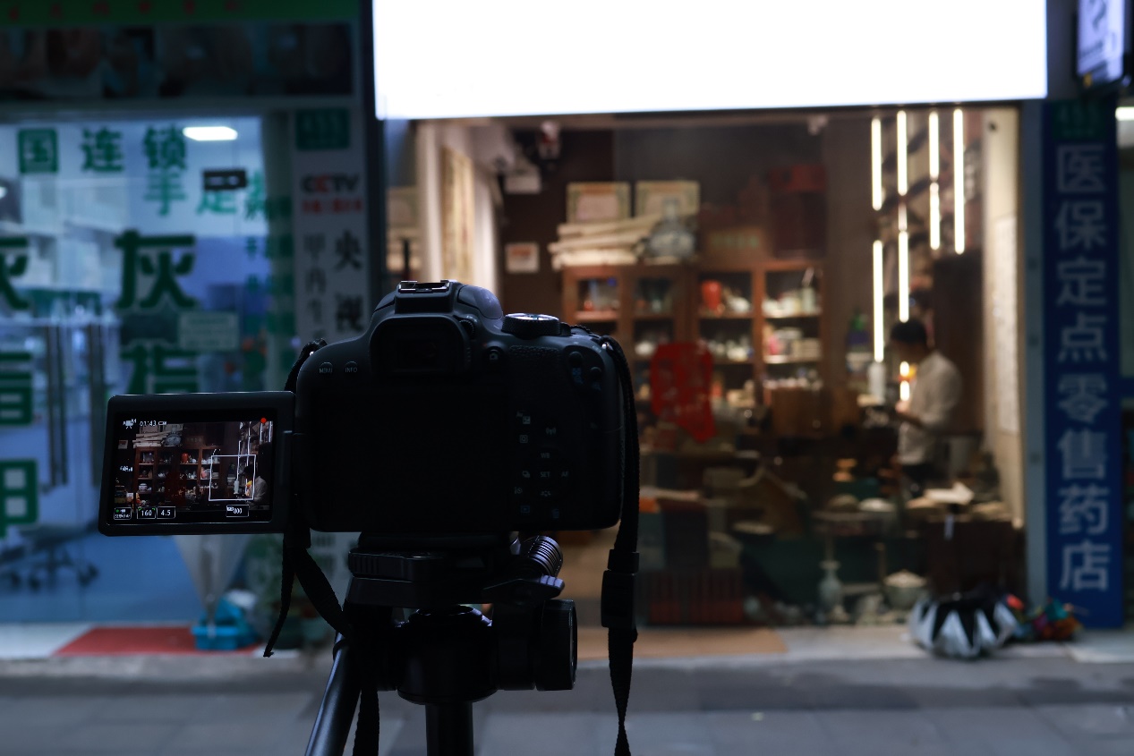 采访结束后,我们在店外拍摄一些空镜,天渐渐放晴,仙霞路的车水马龙又喧闹起来。郑先生小心翼翼地整理着刚才的藏品,动作里满是珍视,在这座日新月异的城市里,像个守着时光的人 —— 当所有人都在追赶未来时,总有人愿意停下脚步,把那些快要被遗忘的昨天,好好留在这小小的店里,让城市的记忆,有了一处可以安放的角落。
