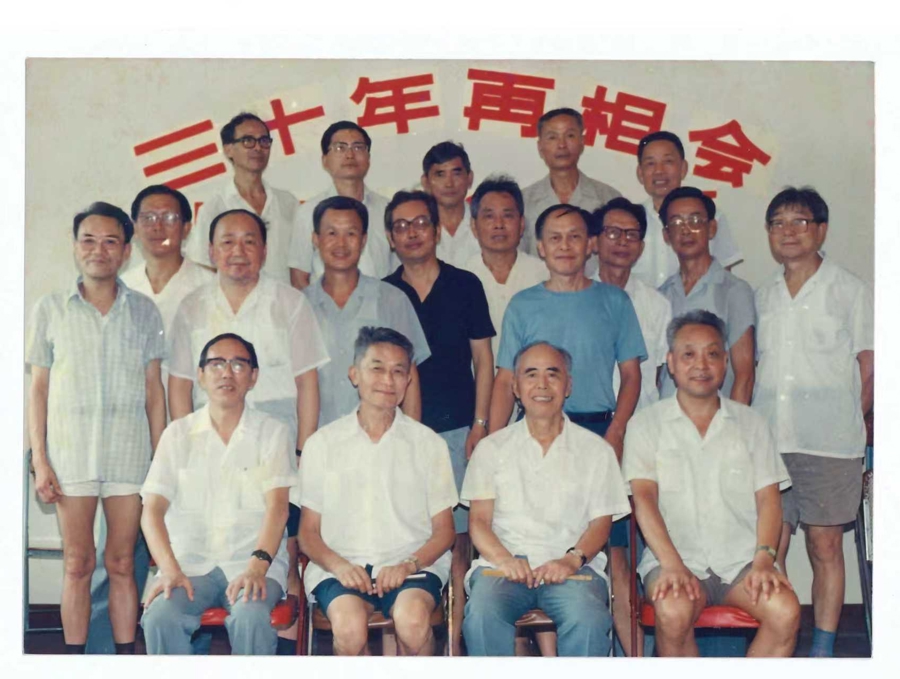 1990年8月,与中文系60届一班校友合影。前排左起:齐森华、徐中玉、钱谷融、马鼎三。