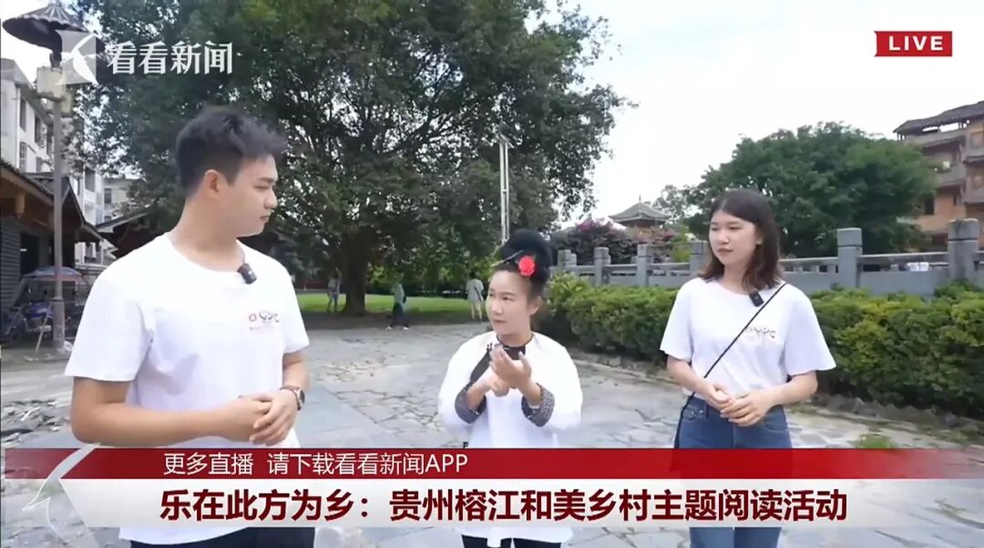 6月27日,落地榕江第二天,华东师范大学传播学院暑期新闻实践团队前往三宝侗寨,各项目小组在此“热身试水”。其中,直播组与上海广播电视台看看新闻Knews合作,全程直播了“乐在此方为乡:贵州榕江和美乡村主题阅读活动”,2022级新闻与传播硕士刘施阳与2022级新闻学专业本科生喻安琪担任预热直播活动的出镜主持人。