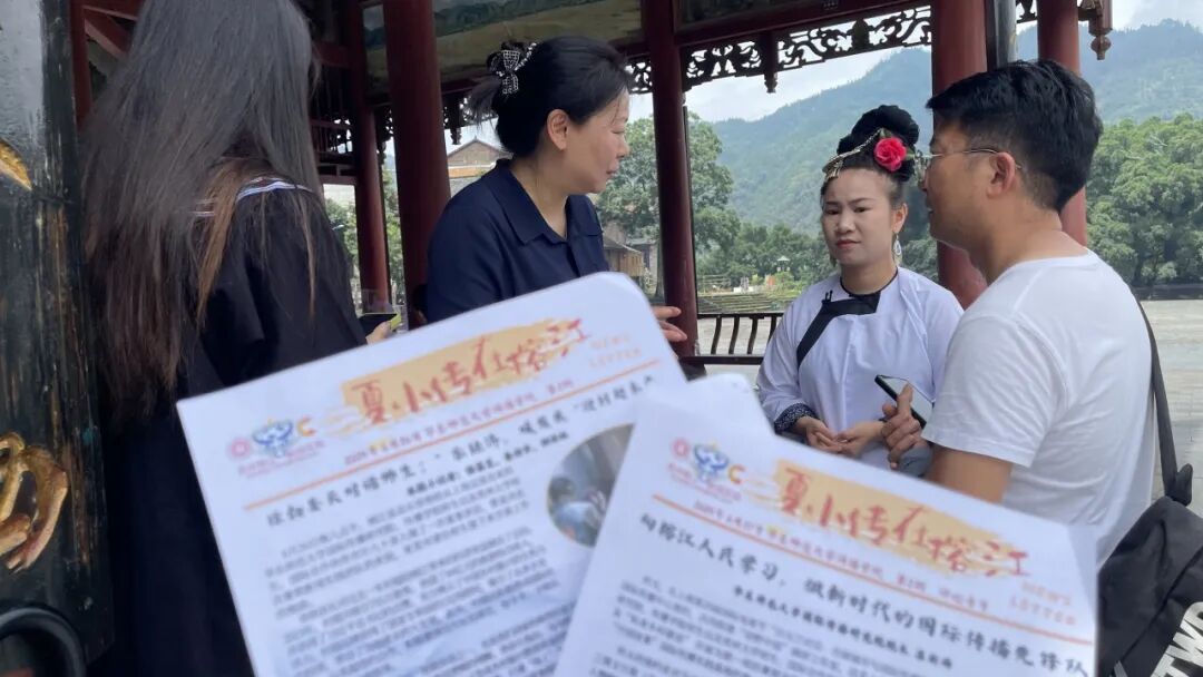 高温与阵雨的双重夹击中,暑期新闻实践的直播组、音诗画MV组和热成像纪录片制作组等项目小组开始工作。经过一天的取点与拍摄,音诗画小组穿梭在鳞次栉比的吊脚木楼间,完成了三分之一的诗歌摄制任务。多语种人物短片小组于黔交友、与黔结缘,在和志愿军老兵、服饰店老奶奶等当地居民的交谈中,进一步了解榕江人民的鲜活故事。其余各组也陆续推进采访拍摄工作,逐渐形成创作框架。