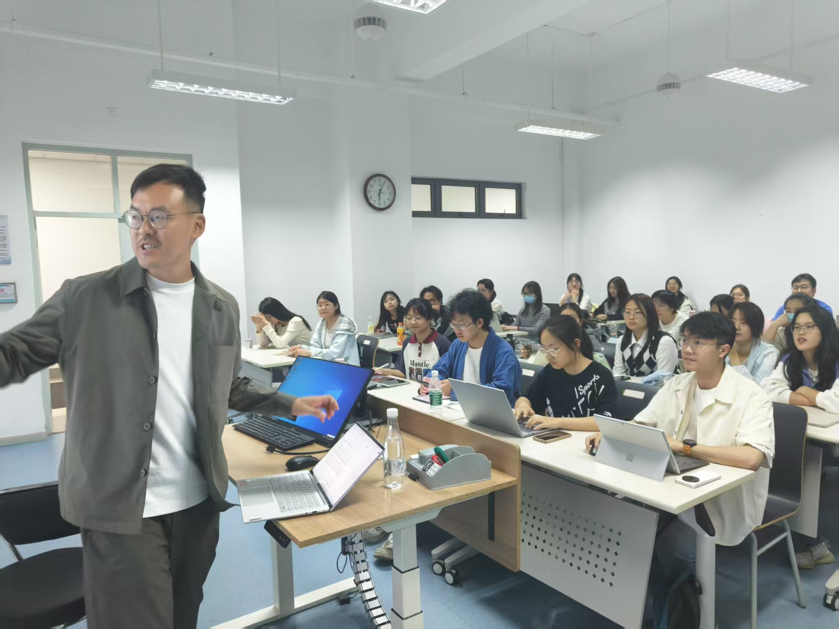 4月10日晚上,在黄平老师的全校公选课《文学写作入门》的课堂上,杨潇老师以“工程师视角”讲解非虚构写作的结构技巧,首先需要根据手头已有的材料为整本书的结构做准备,同时找到故事的关键点来串起各个要素。杨老师指出,“离题”是一个非常实用的技巧,在写作时应留意时空交汇点,这是一个可以进行故事跳跃的好地方。讲座结束后的交流环节,同学们向杨潇老师抛出了密集的问题:如何引出文本的核心?真实与合理想象的边界到底在哪里?等等。杨老师一一解答,课堂氛围热烈。