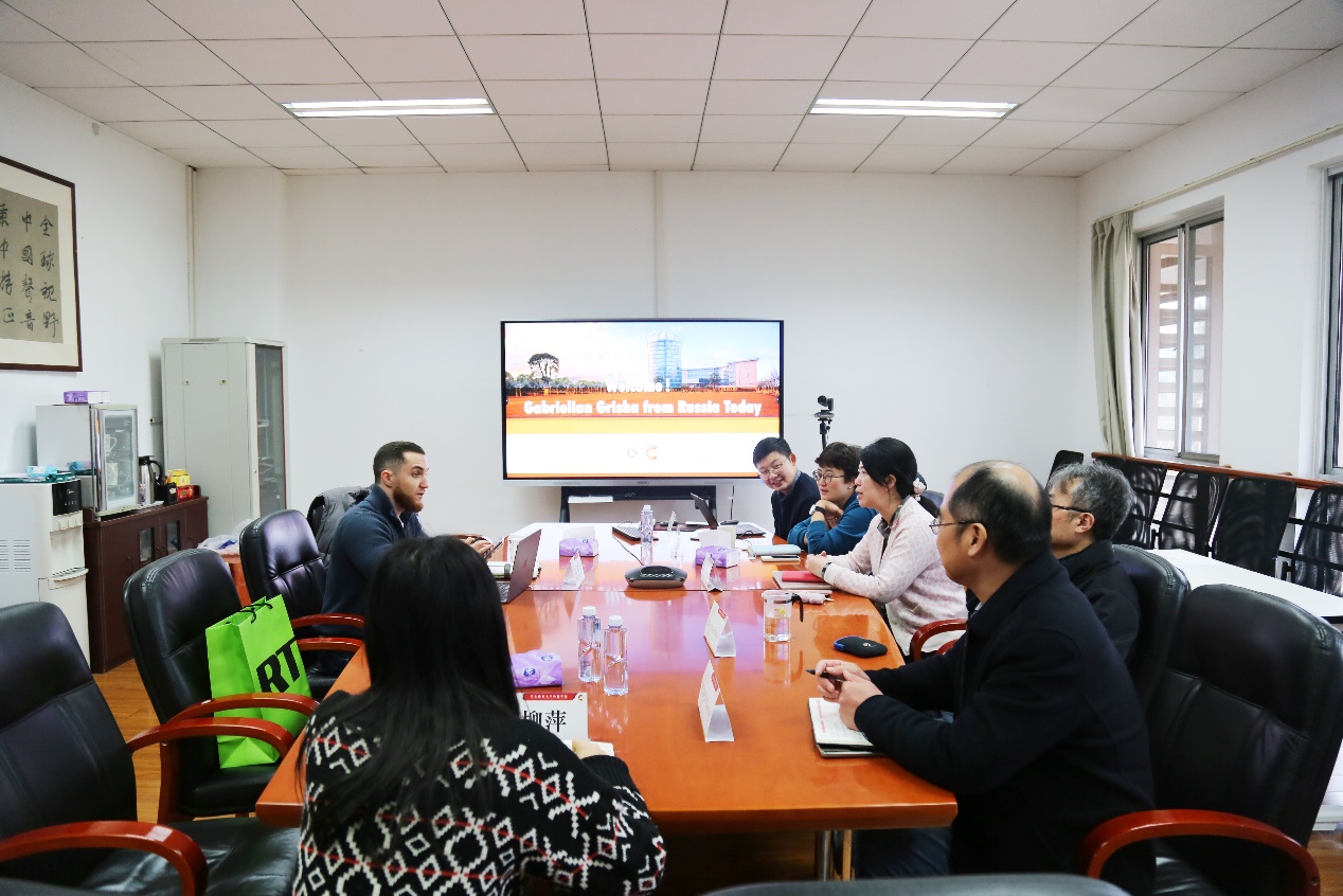 3月5日,俄罗斯国家媒体“今日俄罗斯”(Russia Today,以下简称“RT”)中国新闻部负责人Gabrielian Grisha到访传播学院,就国际传播实践、媒体融合发展及人才培养等议题开展交流调研。传播学院党委书记朱文佳,党委副书记兼副院长孙梦,副院长肖洋、于晶、路鹏程及相关教师参加座谈。朱文佳主持座谈会。