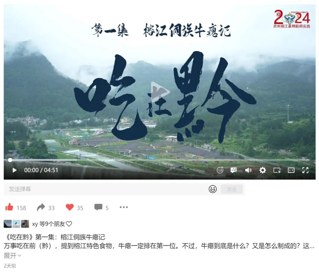各组同学还将每日见闻剪辑为短视频,通过华东师范大学国际传播研究院的微信视频号“全球南方国际传播论坛”投稿发布。截至7月2日,共发出32篇短视频,总浏览量达51167,其中13篇视频作品浏览量突破四位数。6月27日晚发布的《榕江县县长来啦:从乡村走向地球村》浏览量达2.3万,《吃在黔》系列美食纪录片第一集发布后,不到24小时浏览量超过2000,将榕江当地特色美食文化与村超美食经济推广至更多人的视野。