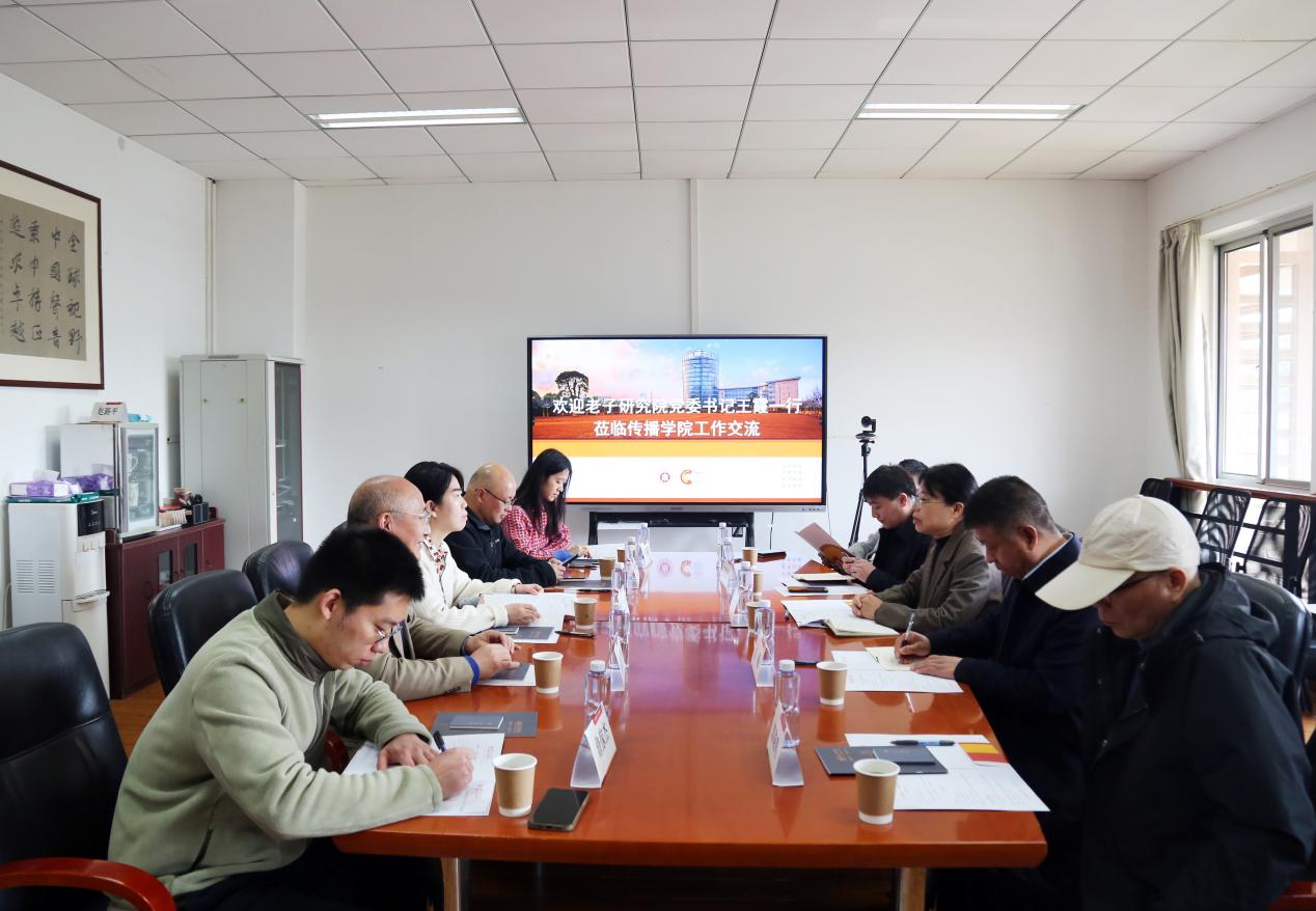 座谈期间,双方围绕学术研究、教学实践等多方面交流经验,就老子思想域外传播相关内容展开热烈讨论,并深入探讨了未来合作方案及预期目标。会前,老子研究院一行还参观了传播学院智慧与创意融媒体实验教学示范中心、演播大厅等实验空间,观看了学院师生出品的AIGC精品成果。