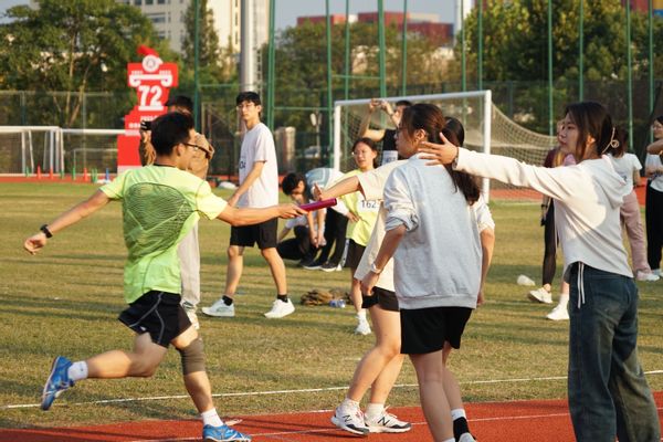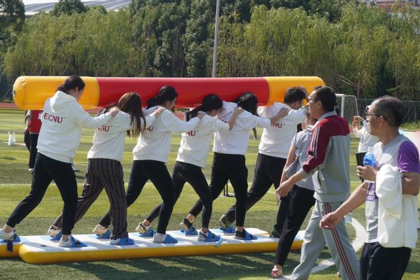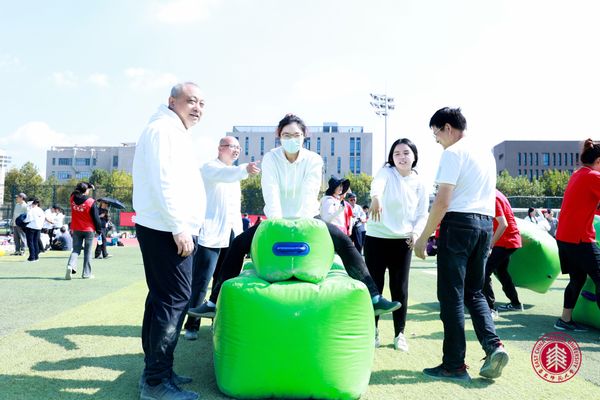 在学生运动会如火如荼进行的同时,教职工趣味运动会也在闵行校区西田径场活力开赛,传院教师们围绕“障碍闯关赛”、“协力竞走”和“人桥接力”三个趣味项目展开角逐,彰显了传院教师的训练有素与团结友爱。