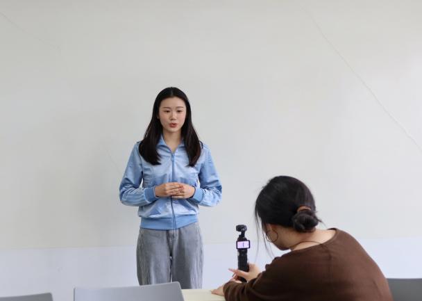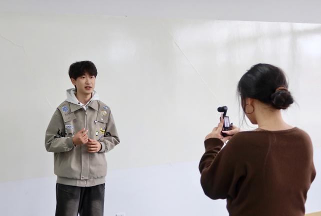 活动现场布置有序,精心划分报名登记与视频录制两个专区,同学们依序领取报名表,细致填写相关信息,完成前期准备后,有序进入视频录制环节,依次完成时长不少于60秒的花式自我介绍。