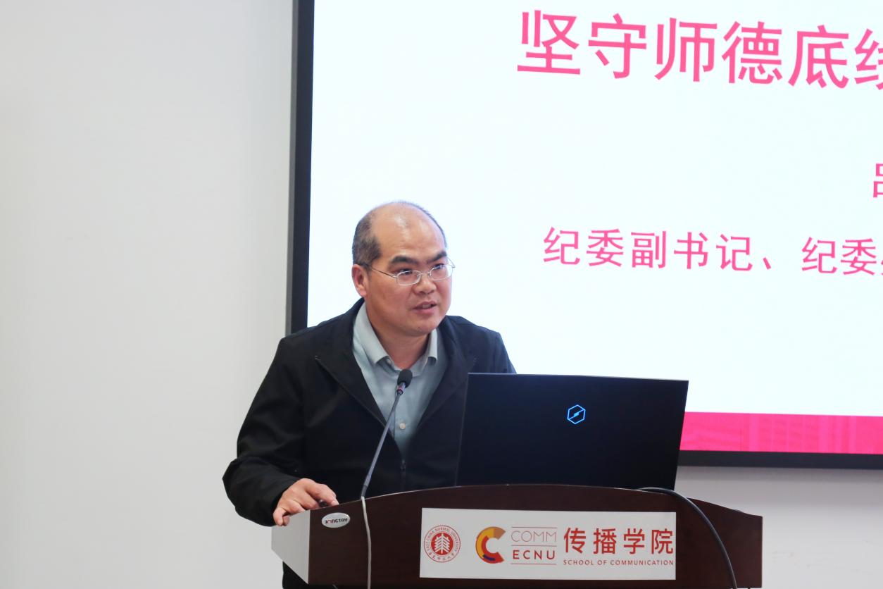 会上,校纪委副书记、纪委办公室主任、监察处处长吕志峰受邀作题为《坚守师德底线 弘扬清风正气》专题报告。报告结合教育领域典型案例,深入阐释、系统剖析了新时代背景下加强师德师风建设的重要性与紧迫性。报告提出,全体教师要站在为党育人、为国育才的政治高度,准确把握师德建设在办学治校中的核心地位,以落实立德树人根本任务为牵引,主动对接学校文科转型布局与国家重大战略需求,切实履行新时代教育工作者的职责使命。报告明确,教职工要严格遵守财务制度与师德规范,筑牢廉洁自律思想防线,共同营造风清气正的育人环境,为学校高质量发展、国家战略落地实施提供坚实的纪律保障。