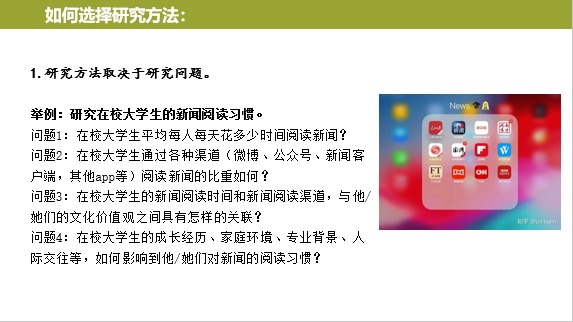 张洋老师从研究问题的分类、如何寻找选题、如何提出研究问题、如何进行文献回顾、如何运用理论、如何选择研究方法、什么样的研究有创新性七个方面分别为同学进行了条理分明且抽丝剥茧的分析,并且结合实例加深同学的理解。张洋老师提到“理论是帮助我们观看世界的镜子”,结合已有科创项目的问题,提醒同学避免出现理论和材料“两张皮”的问题,并且提出非常实用的建议,比如“文献回顾时,不要只搜索跟研究对象直接相关的词”,参加指导会的同学均表示受益匪浅。