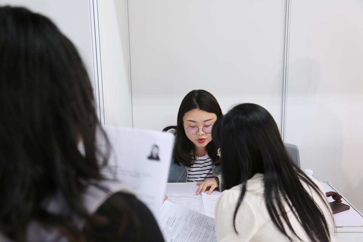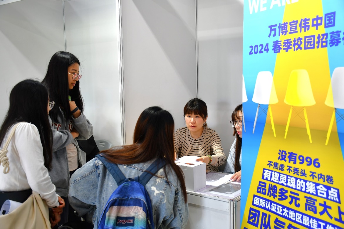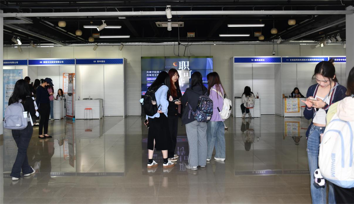 中午12:30左右,用人单位便纷纷到现场布置展位。活动期间,招聘人员们积极向同学介绍岗位职责、就职细节、企业文化,分发宣传册与精美小礼品。为方便加快有就职意向同学的应聘效率,更有单位在传播学院现场专门设置面试处,实现“一站式招聘”。