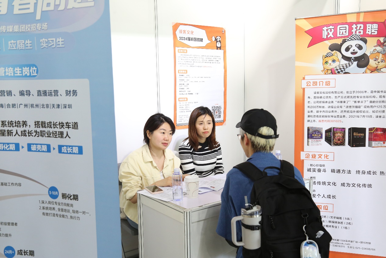 本次招聘会吸引了近二十家用人单位前来招聘,包括新民晚报社、青年报社、读客文化股份有限公司、百视通网络电视技术发展有限责任公司、上海剧星传媒股份有限公司等单位,涵盖新闻记者、影视制作、广告设计、艺术策展等岗位。